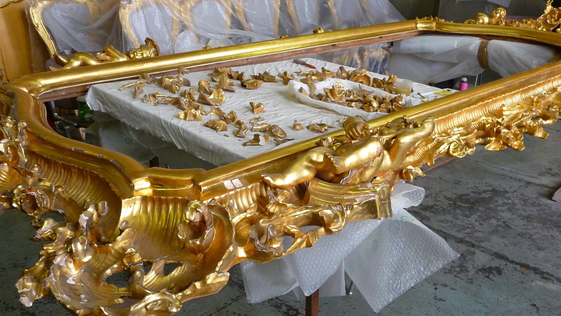 La messa a punto di metodologie per il recupero del particolare pavimento in bitume, unico in Italia e i difficili problemi di conservazione su varie tipologie di opere che costituivano l’arredo (affreschi, dipinti su tela, sculture, stoffe, arredo completo di lampadari, mobili e specchiere di grandi dimensioni, porte e sovrapporte) è stata un’altra faticosa sfida superata con esito positivo.